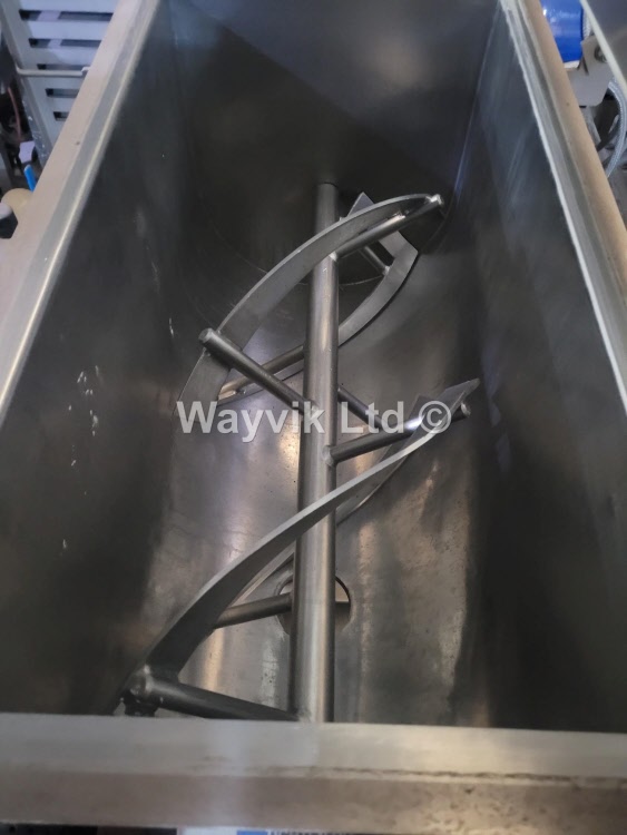 Trough Dimensions: 830mm Long x 415mm Wide x 500mm Deep. Working volume 100 Litres. Full length hinged top cover. 100mm Dia bottom outlet. 1.5kW geared motor drive. On wheels.