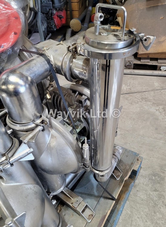2" tri-clover style connections. Sanitary design. ATEX rated. In-line strainer fitted on discharge line.