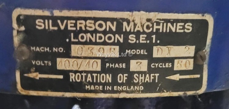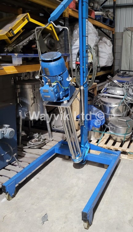 2hp 415/3/50 2850-rpm motor. Mounted on mild steel mobile stand with hand pump hydraulic lift. Ex-food use.