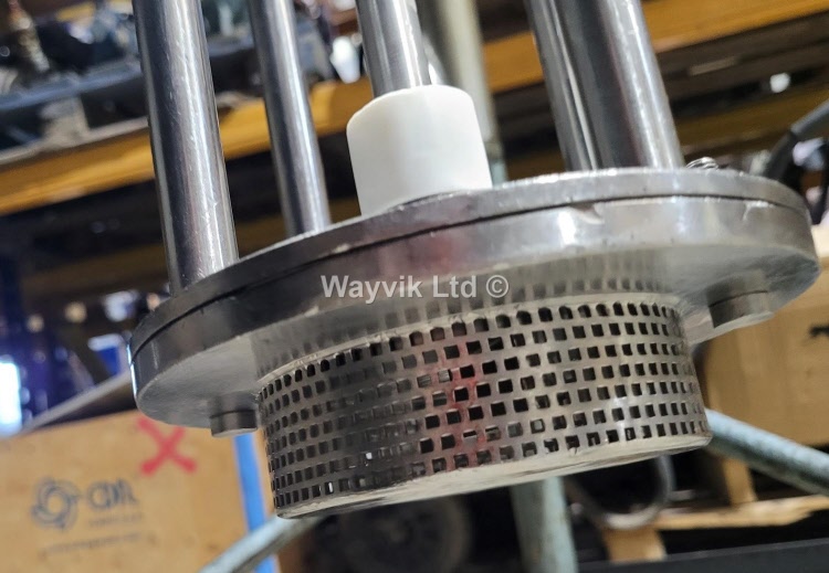 810mm long shaft. 130mm DIA close tolerance shear head. 11 kW 2930-rpm 415/3/50 EEx motor. Hydraulic lift and lower