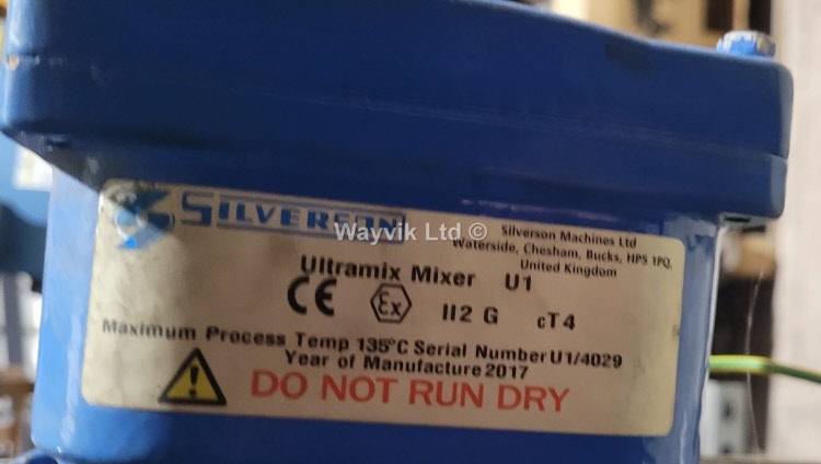 4.0 kW 415/3/50 2950-rpm motor ATEX rated Ex II 2G T3. Mounted on mild steel mobile stand with hand pump hydraulic lift. Ex-food.